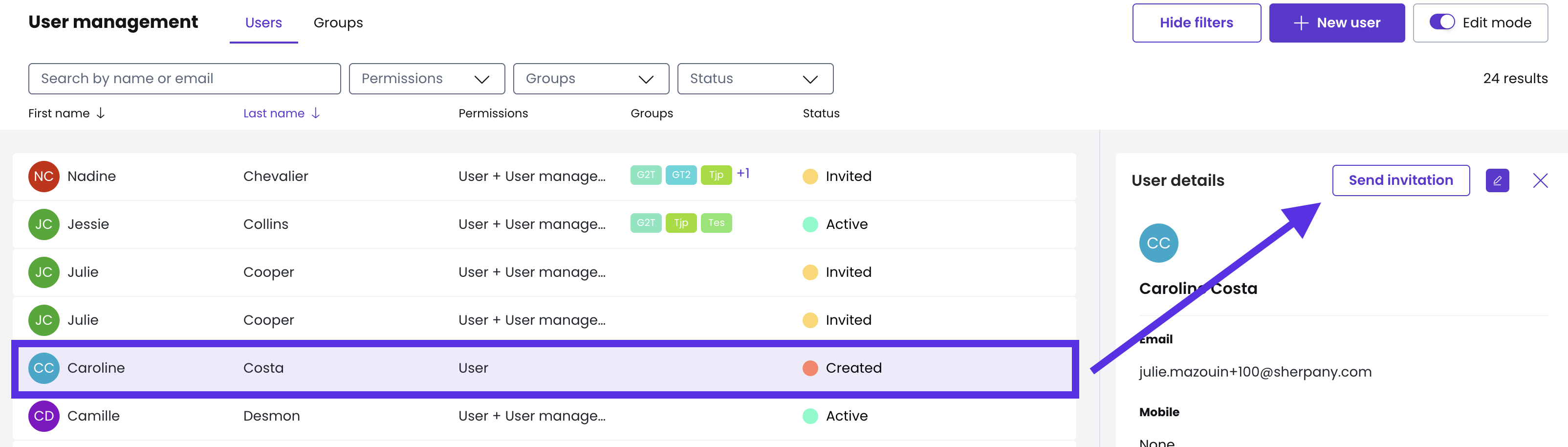 By clicking on the user’s name, you can see the date and time of the last invitation.