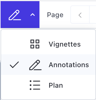 Vous pouvez trouver la vue d'ensemble de toutes les annotations de votre document, divisées par page, en sélectionnant l'icône du livre, en haut à droite de l'écran. Sélectionnez une annotation pour être directement redirigé vers la page souhaitée.