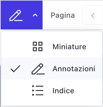 Potete trovare il sommario delle annotazioni nel vostro documento, divise per pagina, selezionando l'icona in alto a sinistra dello schermo sotto Miniature. Selezionate un'annotazione per essere reindirizzati alla pagina desiderata.